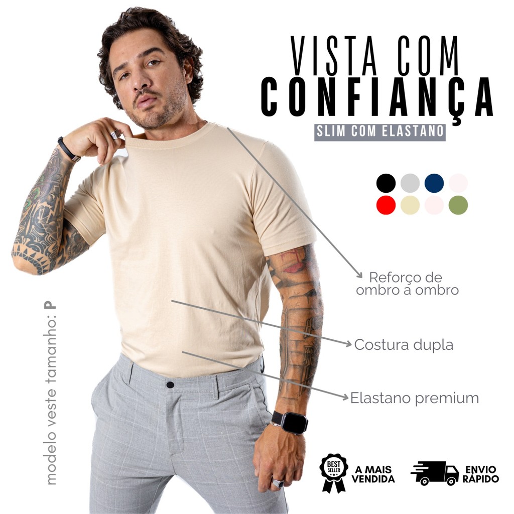 Camiseta Cotton Peruana Básica Premium Algodão Com Elastano Lisa P AO G1 Modelo Tradicional Original