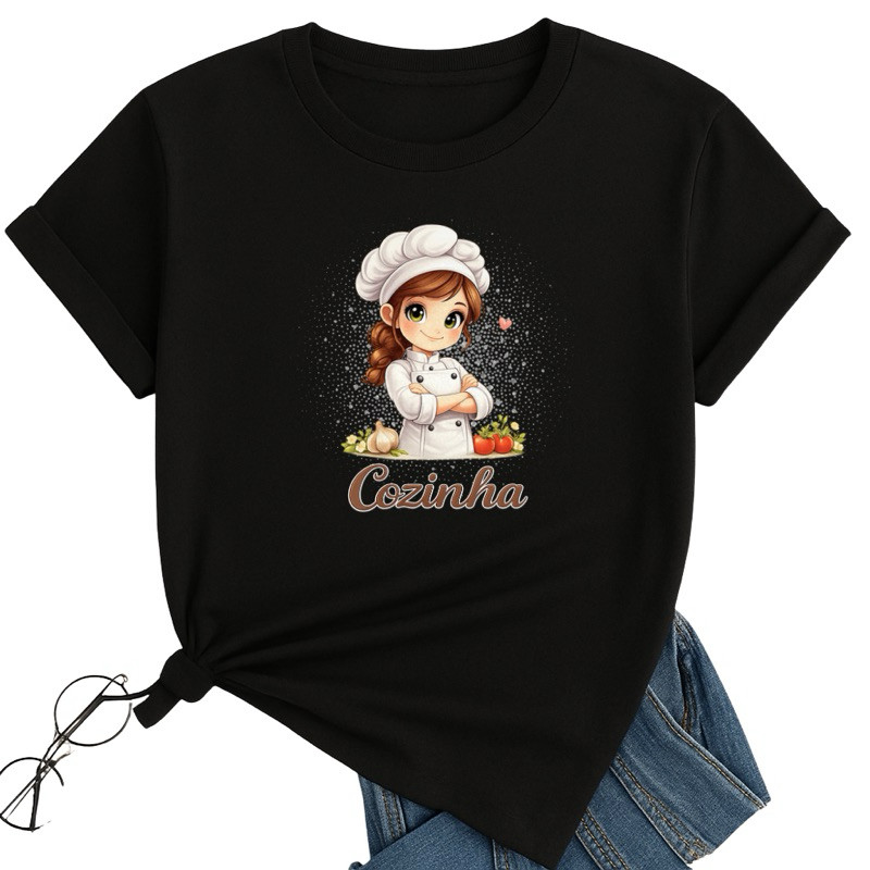 Camiseta Cozinheira Chef Feminina Infantil e Adulto Estampa Fofa Cozinha Profissional P ao GG 2 ao 16