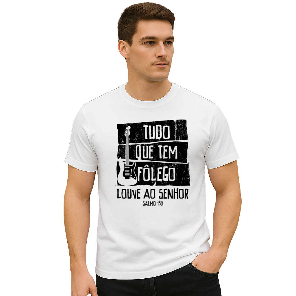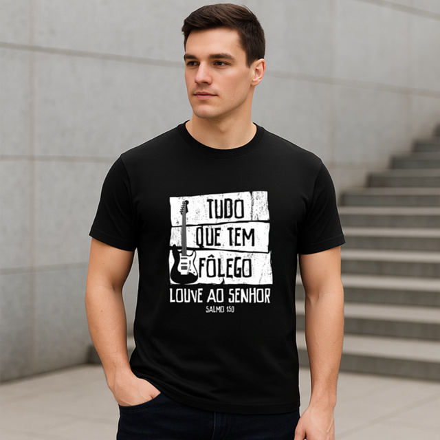 Camiseta Cristâ Masculina 100% Algodão - Músico - Gospel Adoração Uma Camiseta feita para quem vive a fé e a música! A peça traz a estampa "Tudo que tem Fôlego Louve ao Senhor", uma mensagem forte para músicos, levitas e adoradores. Produzida em laha 100% algodão de alta qualidade, oferecendo conforto extremo, toque macio e caimento perfeito no corpo. Ideal para cultos, ensaios, congressos, conferências, retiros e também para o uso casual no dia a dia. Diferenciais da Camiseta Estampa premium em alta definição Malha 100% algodão Super confortável e resistente Ideal para músicos, ministros de louvor e adoradores Não desbota com facilidade Costura Reforçada Modelagem Moderna e atual 📏 Tabela de Medidas P M G G - CONSULTE NOSSA TABELA DE MEDIDAS Pode haver variação de até 2cm conforme o corte da peça Para garantir o tamanho ideal, compare as medidas com uma camiseta que você já possui e que lhe caia bem. Como Cuidar da Sua Camiseta Lavar sempre do avesso Não usar alvejante Não passar ferro diretamente na estampa Lavar à mão ou no ciclo delicado Secar à sombra Envio Rápido Pedidos enviados com agilidade e bem embalados para chegar em perfeitas condições Boas Compras! FC Store