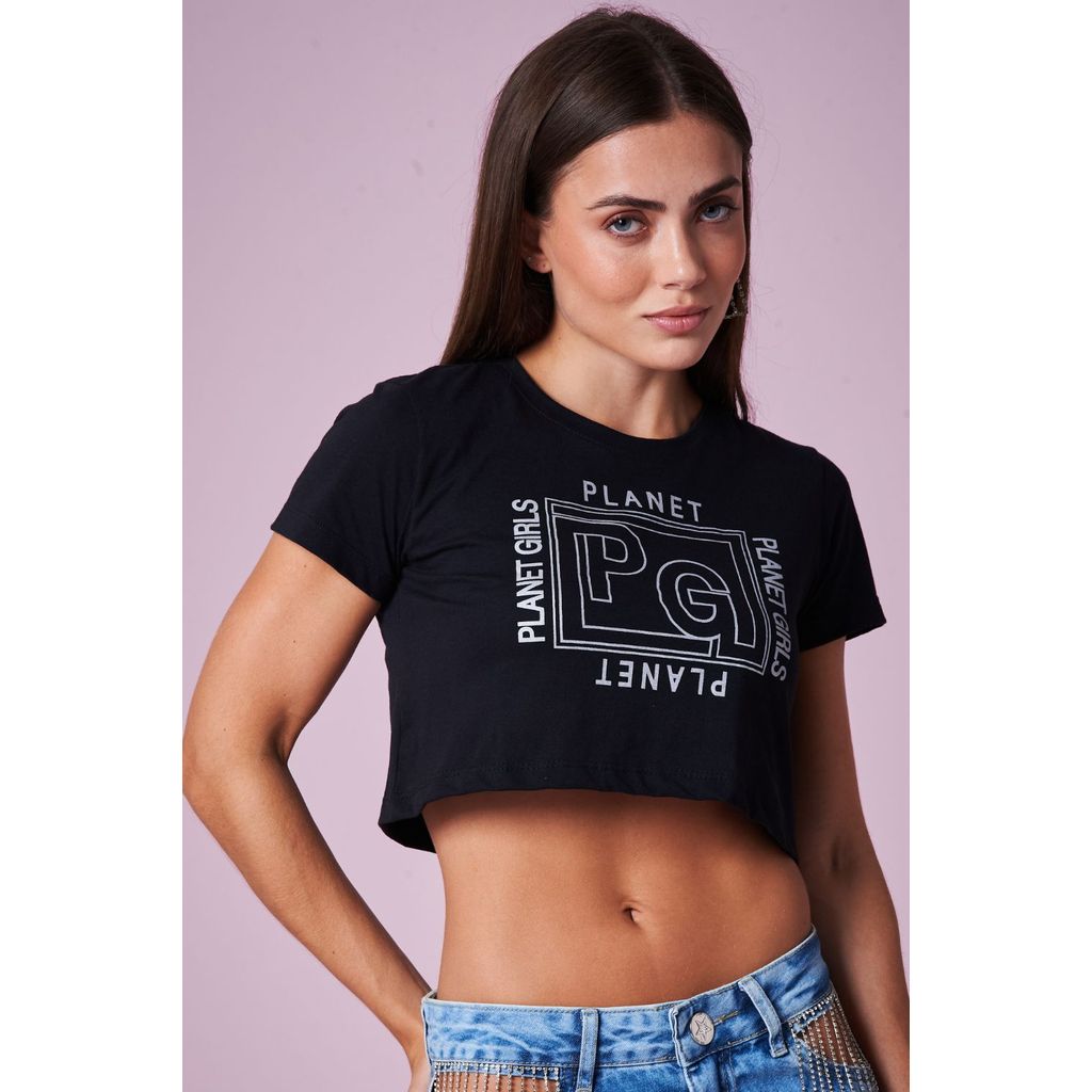 Camiseta Cropped Feminina Logo Planet Girls Preto