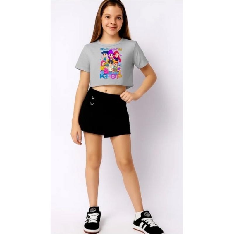 Camiseta Cropped k-pop Hunters infantil e juvenil