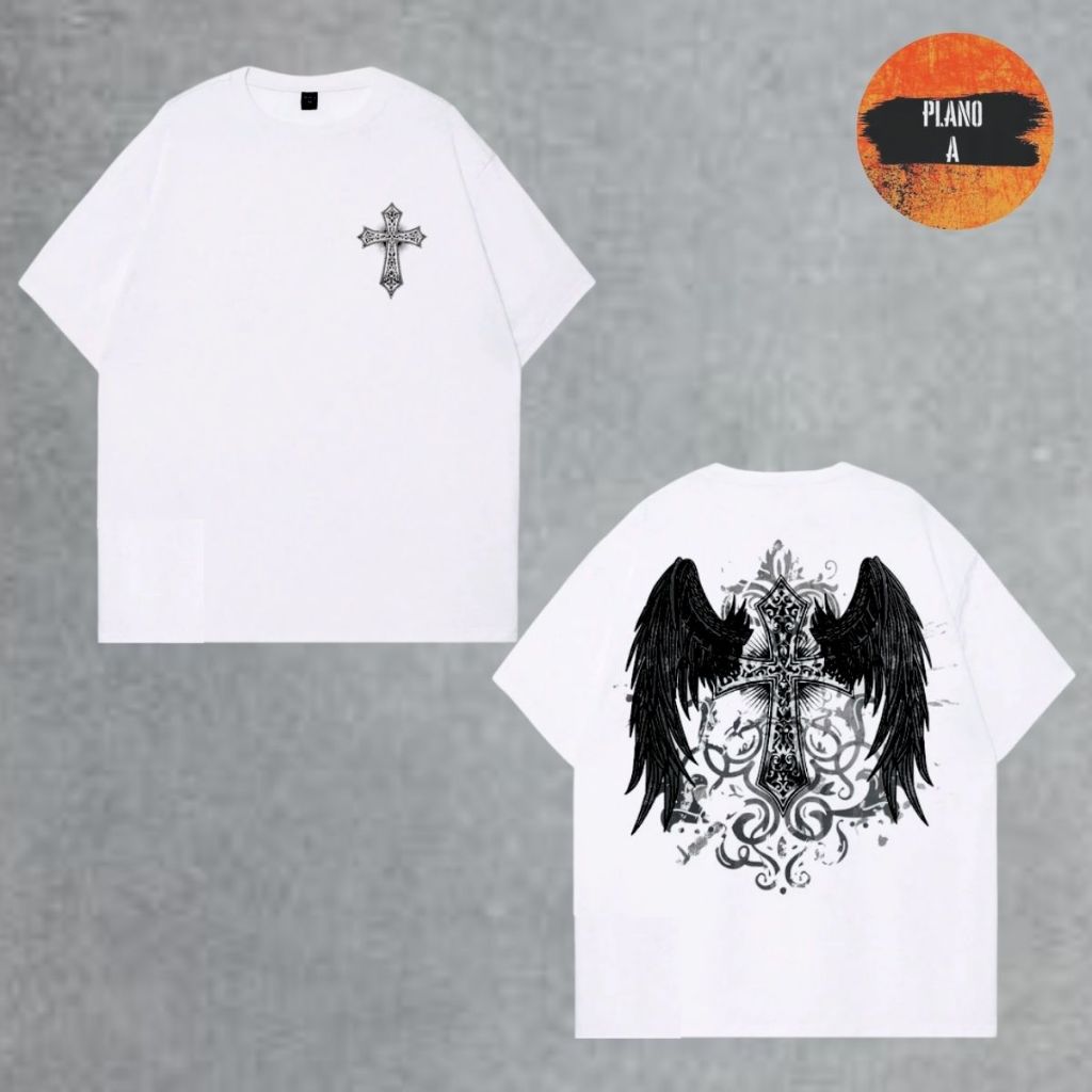 Camiseta Cruz Asas Qualidade Algodão Unissex Lançamento Gotico Emo Dark Goth Temos Plus Size Envio Rapido