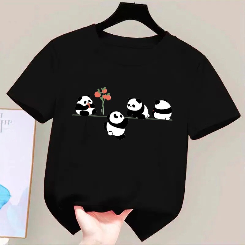 Camiseta De Algodão Infantil Estampada Pandas Fofos Tendência