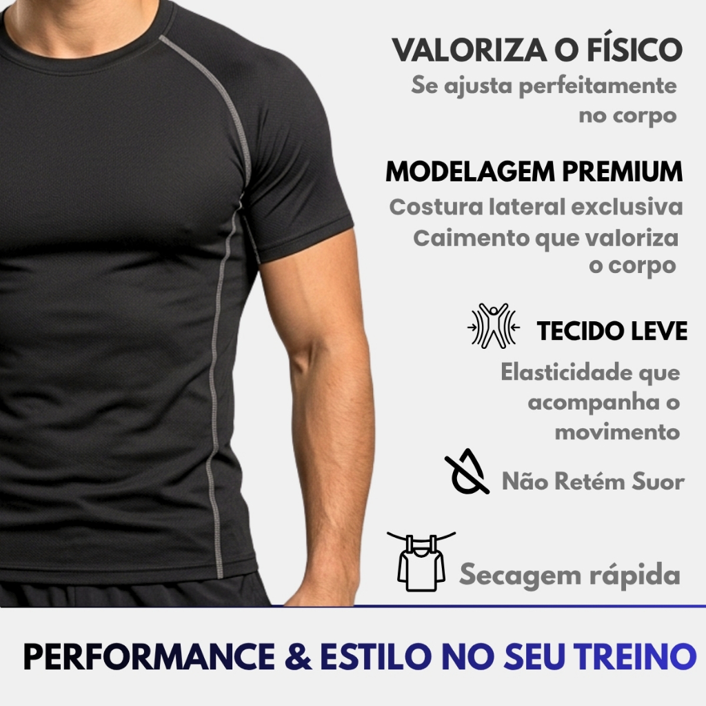Camisa de compressão térmica em poliéster com elastano, tecido muito leve e flexível que proporciona maior liberdade nos movimentos durante as atividades físicas; com a tecnologia térmica control, mantém a temperatura ideal do corpo em qualquer temperatura; possui também proteção UV permanente, que não sai com as lavagens. Alguns Diferenciais: 1) Nossa camisa possui costuras reforçadas feitas com máquinas especiais, são costuras reais nas laterais, unem o pano de verdade, não são decorativas como a maioria 2) Produzido com tecido inteligente, retém o calor do nosso corpo ajudando a manter o equilíbrio térmico. 3) Seu material elástico, se molda tanto a um corpo masculino ou feminino e proporciona muito conforto 4) Não amassa e não precisa passar, ideal para viagens 5) Protege contra os raios solares uva e uvb 6) Não desbota, não faz bolinhas, 7) Ajuda a manter o corpo longe do suor e seca rapidamente 8) Evita a proliferação de bactérias que causam mal cheiro Bem-vindos a Diamond Web Shop, temos o compromisso em garantir a satisfação dos nossos clientes. Sempre com novidades e exclusividades, prestando bom atendimento na venda e no pós-venda, estabelecendo uma relação de confiança. Dúvidas, estamos disponíveis no Chat! Aguardamos seu pedido! Obrigado pela preferência!