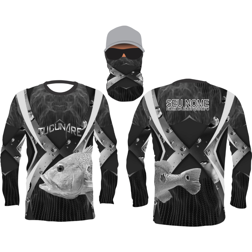 camiseta de pesca uv50 tucunare nome gratis e bandana ref102