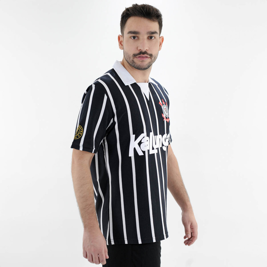 Camiseta de Time Coimbra Corinthians Listrada Preto e Branco - Masculino