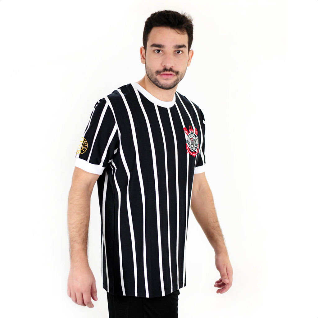 Camiseta de Time Coimbra Corinthians Retrô Listrado Preto - Masculino