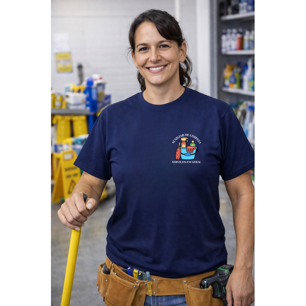 Camiseta De Trabalho Auxiliar de Limpeza Uniforme Profissional Autônomo