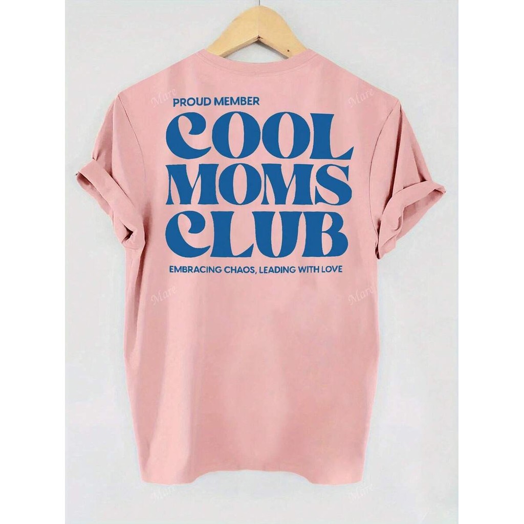 Camiseta de Verão Casual com Decote Redondo e Manga Curta para Mulheres do "Cool Mom Club"