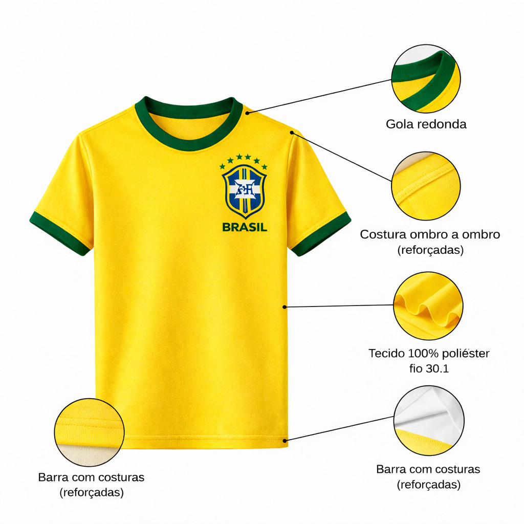 Camiseta do Brasil Infantil Dryfit Copa do Mundo 2026 Crianças 2 a 15 anos