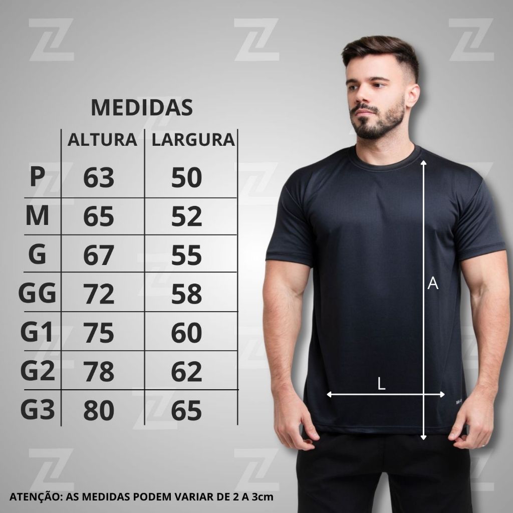 As camisetas masculina Zoo Company chega para acompanhar o homem que busca conforto total para um melhor desempenho nos treinos e atividades físicas. Maciez e leveza com Tecido leve e com tecnologia que ajuda a não reter o líquido facilitando na evaporação e na lavagem. » Não precisa passar » Não retêm suor e não deixa cheiro » Tecido de alta durabilidade 100% poliéster » Camisetas Lisas confeccionadas com alta tecnologia. » Dupla costura Costuradas em máquinas e linhas de qualidade. TABELA DE MEDIDAS - G1 largura 60 x 75 altura - G2 largura 62 x 78 altura - G3 largura 65 x 80 altura - Produto a pronta entrega, envio em menos de 24hrs!! - Enviamos para todo o Brasil - Qualquer dúvida estamos a di