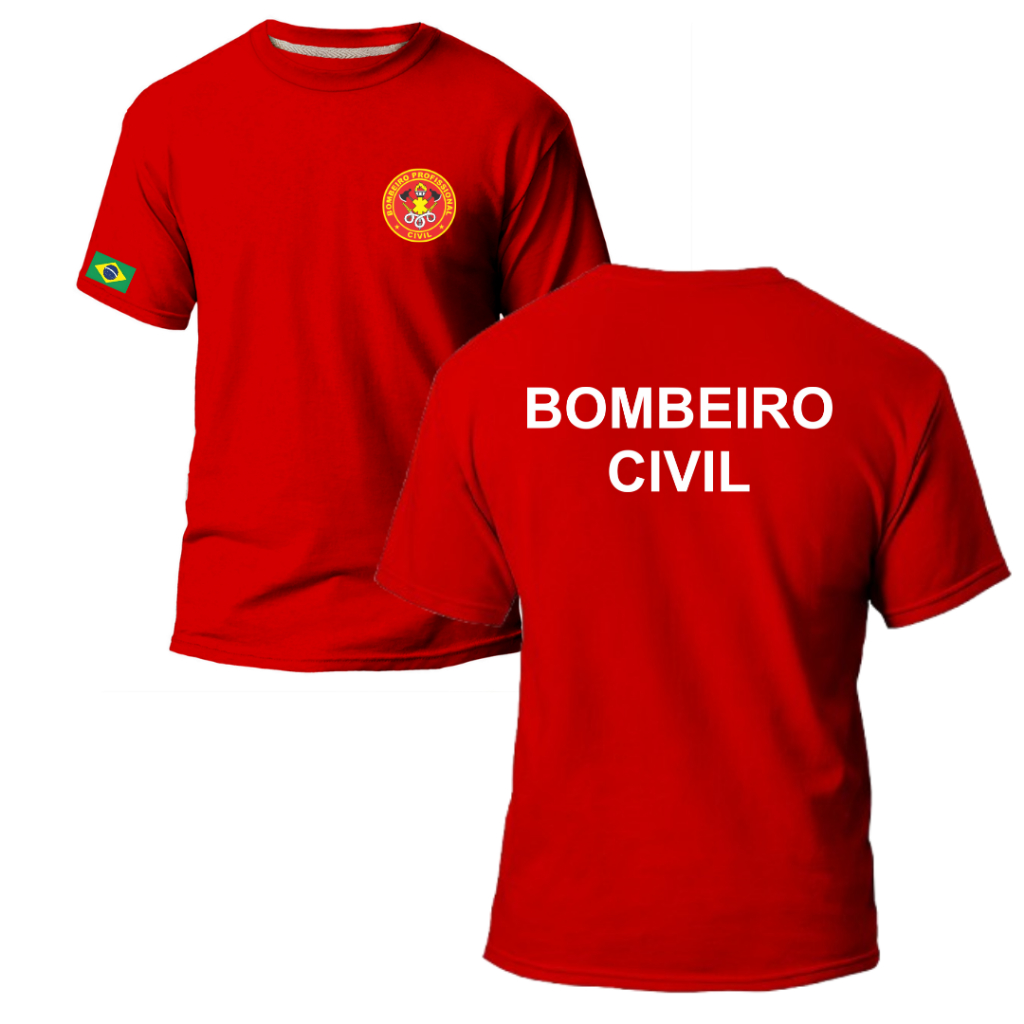 Camiseta Estampada Bombeiro Civil Com Bandeira Do Brasil Na Manga