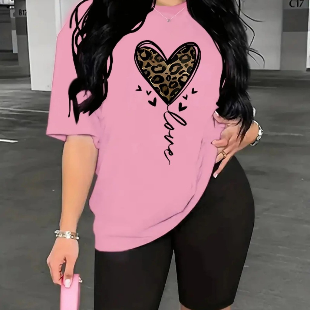 Camiseta Estampada Feminina Coração Impresão Solta Tamanho Grande Camiseta Leggings Premium Impres Store