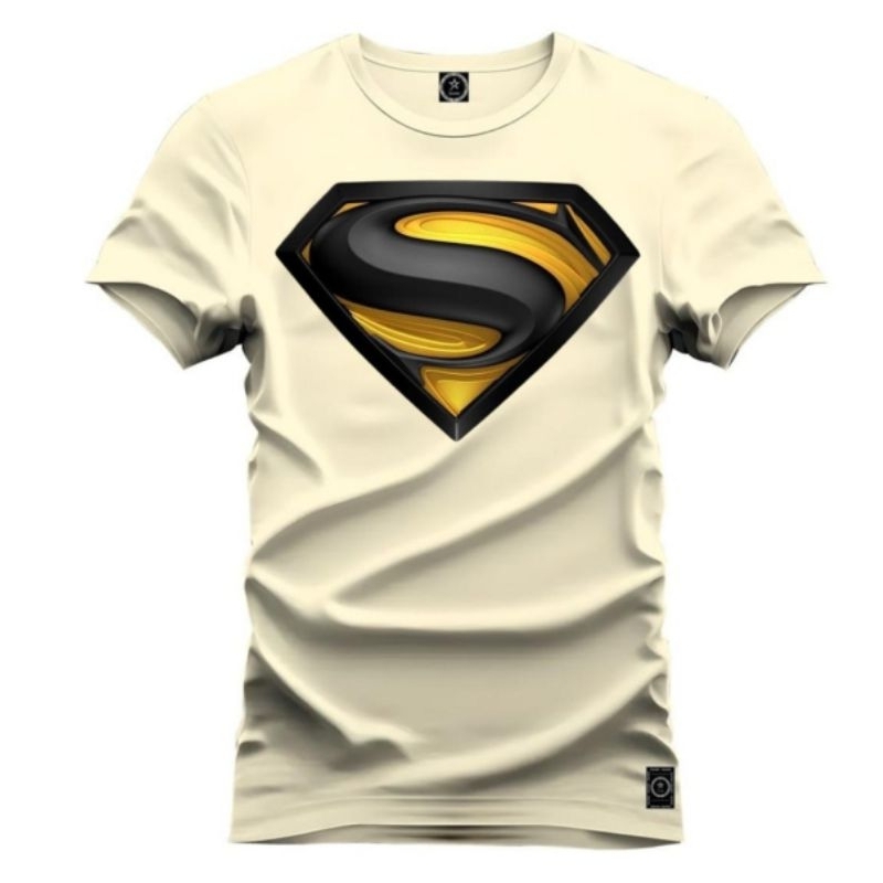 camiseta estampada super homem preto e amarelo 100% algodao