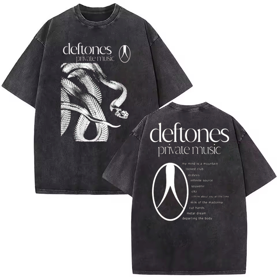 Camiseta Estonada Lavada Vintage Deftones Private Music Snake World Tour Banda Rock Punk Unissex