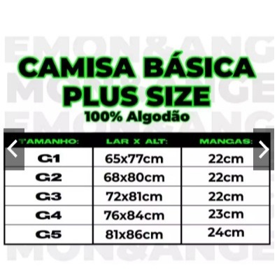 ATENÇAO INFANTIL TEMOS SOMENTE COR PRETA PLUS SIZE SOMENTE PRETA E BRANCA DEMAIS TAMANHOS TODAS CORES DO ANUNCIO - Estampa não racha! - Pra você que quer uma Camiseta despojada e bem confortável!! - Modelagem que Veste Bem! - Não Desbota! ATENÇÃO - O modelo da camisa não é oversized, tamanho padrão. Descrição NOSSA ESTAMPA TEM MELHOR QUALIDADE DA ATUALIDADE FEITO NA IMPRESSAO DTF Olá, muito obrigado pela sua visita! Espero que tenha gostado deste anuncio! Trabalhamos todos os dias com muito amor para enviar até você o melhor produto do mercado, com um preço justo, altíssima qualidade, excelência no atendimento, e principalmente respeito com o prazo de postagem para que você sempre receba sua compra ANTES do prazo combinado. Nossas camisetas tem um tecido leve e confortável. Composto de 100% Algodão seu caimento é perfeito e tem como principal diferencial não encolher e nem desbotar pós lavagem! Corte, perfeito para uso no dia a dia! COMO ESCOLHO O TAMANHO E CORES? Pode escolher somente 1 tamanho por compra, caso queira mais de 1 tamanho compre no carrinho, cada compra com seu tamanho especifico, e as cores são escolhida no campo abaixo do preço, mais de 1 cor deve se colocar no carrinho, cada compra com cor especifica. Vamos agora a alguns detalhes sobre este anuncio: Horário de atendimento: - De Segunda a Sexta-Feira: das 08:00 às 16:00; - Responderemos sua pergunta ou mensagem em ordem de recebimento! - Assim que for postado, você receberá o seu código de rastreamento; - Se não houver nenhum atraso das transportadoras, seu pedido sempre será entregue antes do prazo. - Modelo: Camiseta Tradicional (MASCULINA-FEMININA-INFANTIL E PLUSSIZE ) - Disponível nos Tamanhos: 10,12,14,P, M, G, GG -G1 AO G5 NO PLUSSIZE Tecido: 100% Algodão - Detalhes da Estampa: Alta durabilidade MEDIDAS DA CAMISETA ( AS MEDIDAS PODEM VARIAS 2CM PARA MAIS OU MENOS) PLUS SIZE UNISSEX LARGURA G1 59 CM - ALTURA G1 78 CM LARGURA G2 60 CM - ALTURA G2 82 CM LARGURA G3 65 CM - ALTURA G3 85 CM G4=Alt - 85 Larg - 69 - Manga - 22 Cm G5=Alt - 87 Larg - 71 - Manga - 22 Cm ..................................................................................... {MODELAGEM UNISSEX} P - Altura: 67cm - Largura: 47cm M - Altura: 69cm - Largura: 49cm G - Altura: 71cm - Largura: 51cm GG - Altura: 73cm - Largura: 56cm INFANTIL 10 - Altura: 52cm - Largura: 38cm 12- Altura: 55 cm - Largura: 41cm 14 - Altura: 58 cm - Largura: 44cm Observações Imagem meramente ilustrativa, algumas tonalidades de cores podem sofrer alterações de acordo com seu monitor. As medidas das camisetas podem variar em 2CM para mais ou para menos e a malha poderá encolher até 5% após a primeira lavagem.