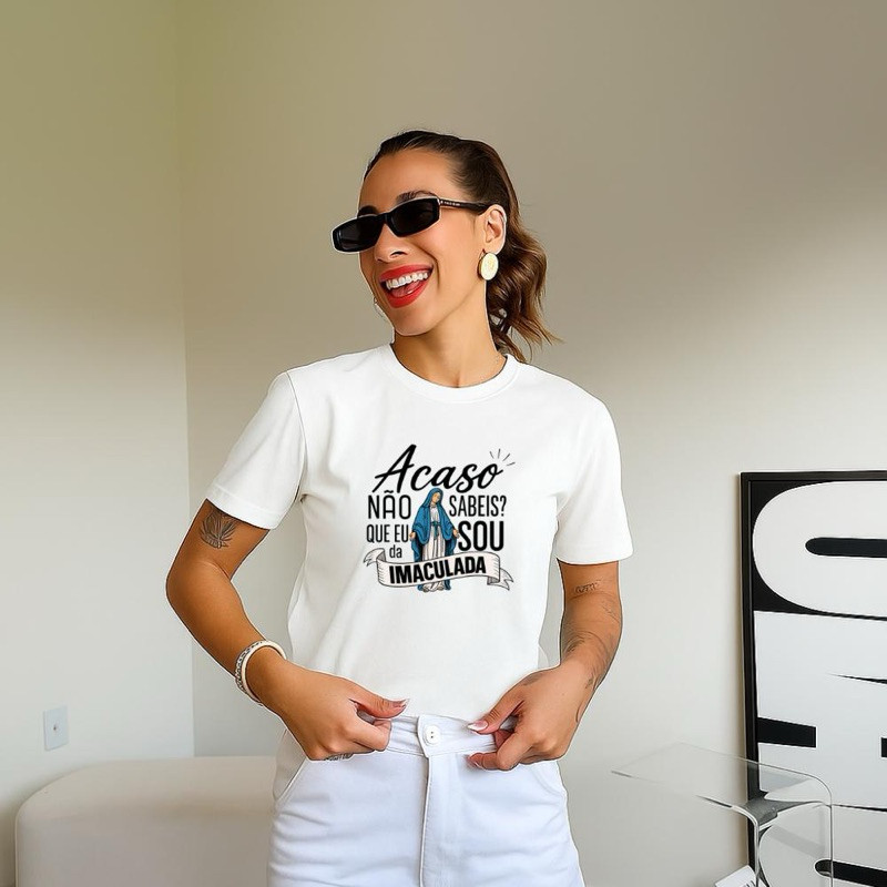 Camiseta Feminina 100% Algodão Estampa Nossa Senhora Aparecida Blusa Catolica Sou Da Imaculada
