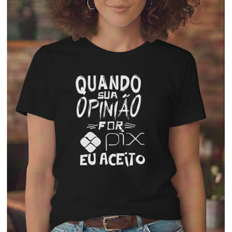 Camiseta Feminina Babylook Quando Sua Opinião For Pix Eu Aceito Blusa Lançamento Tumblr Blogueira