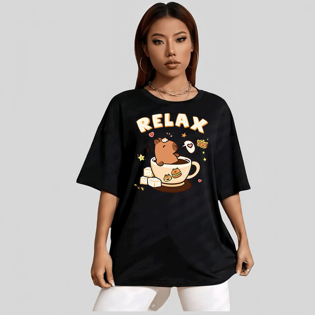 Camiseta Feminina Basica 100% Algodão Premium (Unissex) Larga Estampa Relax Capivara Capibara