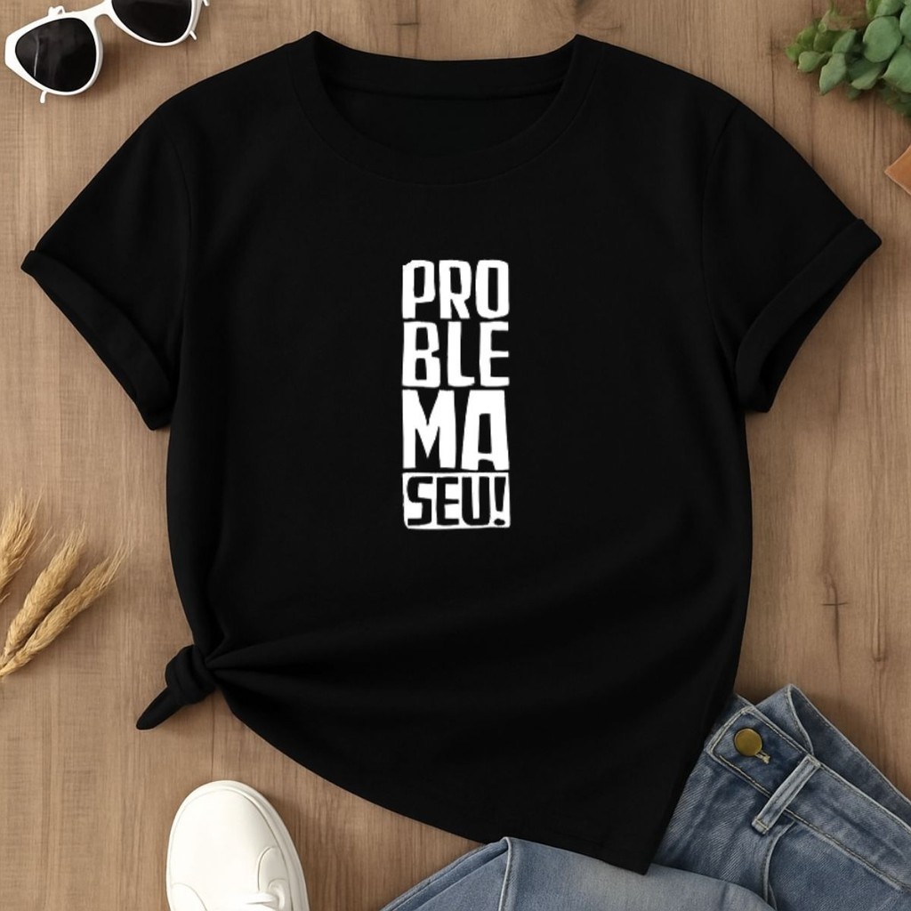 Camiseta Feminina Básica Estampa Problema Seu Estampa Casual Versátil Envio Ja 100% Algodão