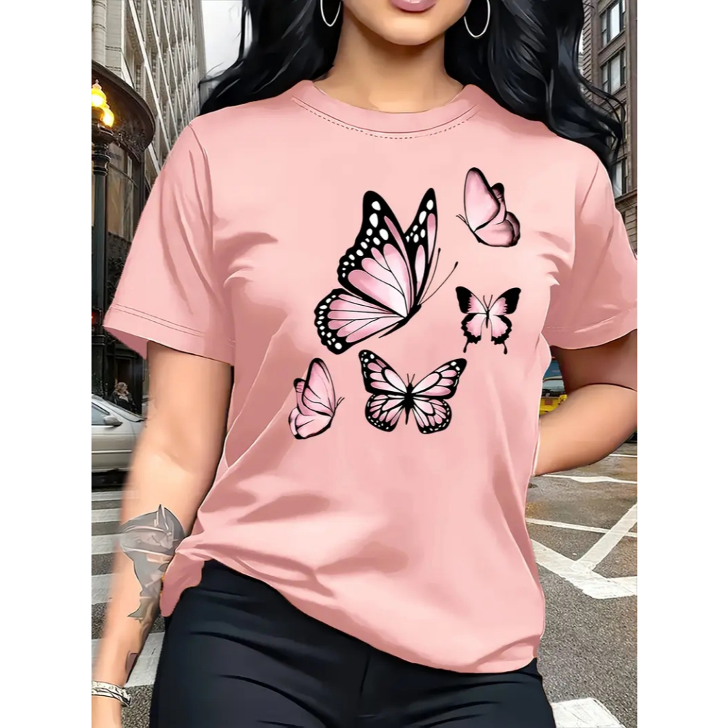 Camiseta Feminina Casual Algodão100% Estilosa e Casual Borboletas Varias Cores