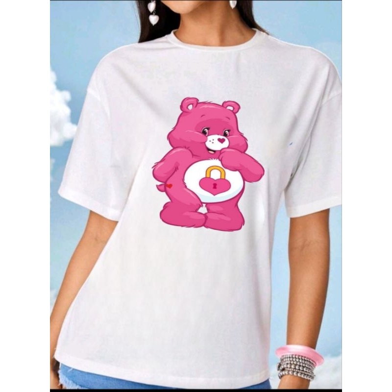 Camiseta Feminina Casual Estampa Ursinhos Carinhosos Azul e Rosa Malha 30.1