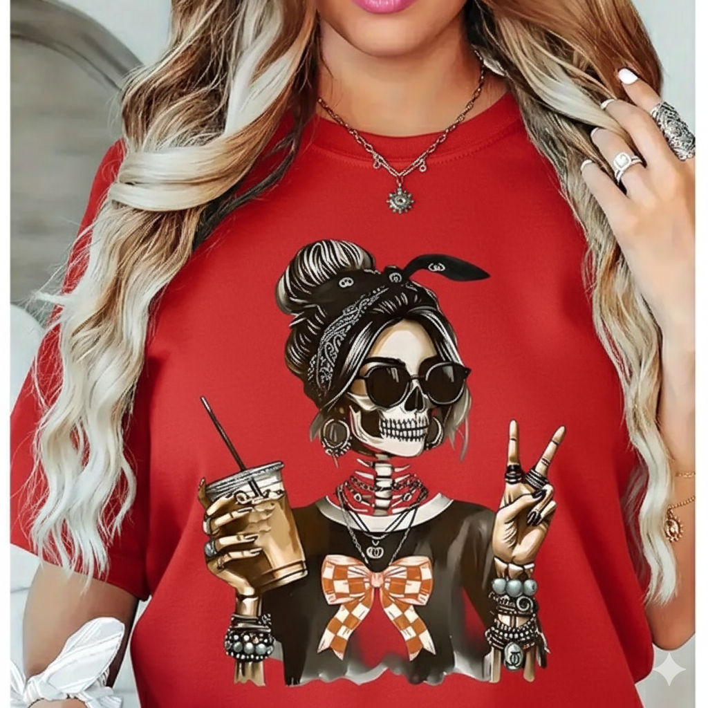 Camiseta Esqueleto Estiloso - Rock, Gótica e Descolada! Adicione um toque de atitude e originalidade ao seu guarda-roupa com a nossa camiseta "Esqueleto Estiloso"! Perfeita para quem ama o estilo gótico, rock, alternativo ou simplesmente quer uma peça única e cheia de personalidade. A estampa detalhada e moderna combina perfeitamente com qualquer look, do casual ao mais ousado. Por que a nossa camiseta é a sua melhor escolha? Design Exclusivo: A estampa de esqueleto descolado, com bandana, óculos de sol, laço quadriculado e um copo de bebida, cria um visual autêntico e divertido. É a peça perfeita para expressar sua personalidade. Tecido de Alta Qualidade: Confeccionada em 100% algodão, fio 30.1 penteado, que garante um toque macio, confortável e respirável. Ideal para usar em todas as estações. Modelagem Unissex: Com um corte clássico e versátil, a camiseta veste perfeitamente tanto homens quanto mulheres, proporcionando conforto e um caimento impecável. Versatilidade no Estilo: Combine com jeans, jaquetas de couro, calças pretas, saias ou shorts. É a peça-chave para shows, festivais de música, encontros com amigos ou simplesmente para o dia a dia. Detalhes do Produto: Material: 100% Algodão Fio 30.1 Penteado Cores disponíveis: Branca e Preta Tamanhos: P a g3 Gola: Redonda Manga: Curta Adquira já a sua e mostre ao mundo o seu lado mais rock'n'roll com muito estilo!