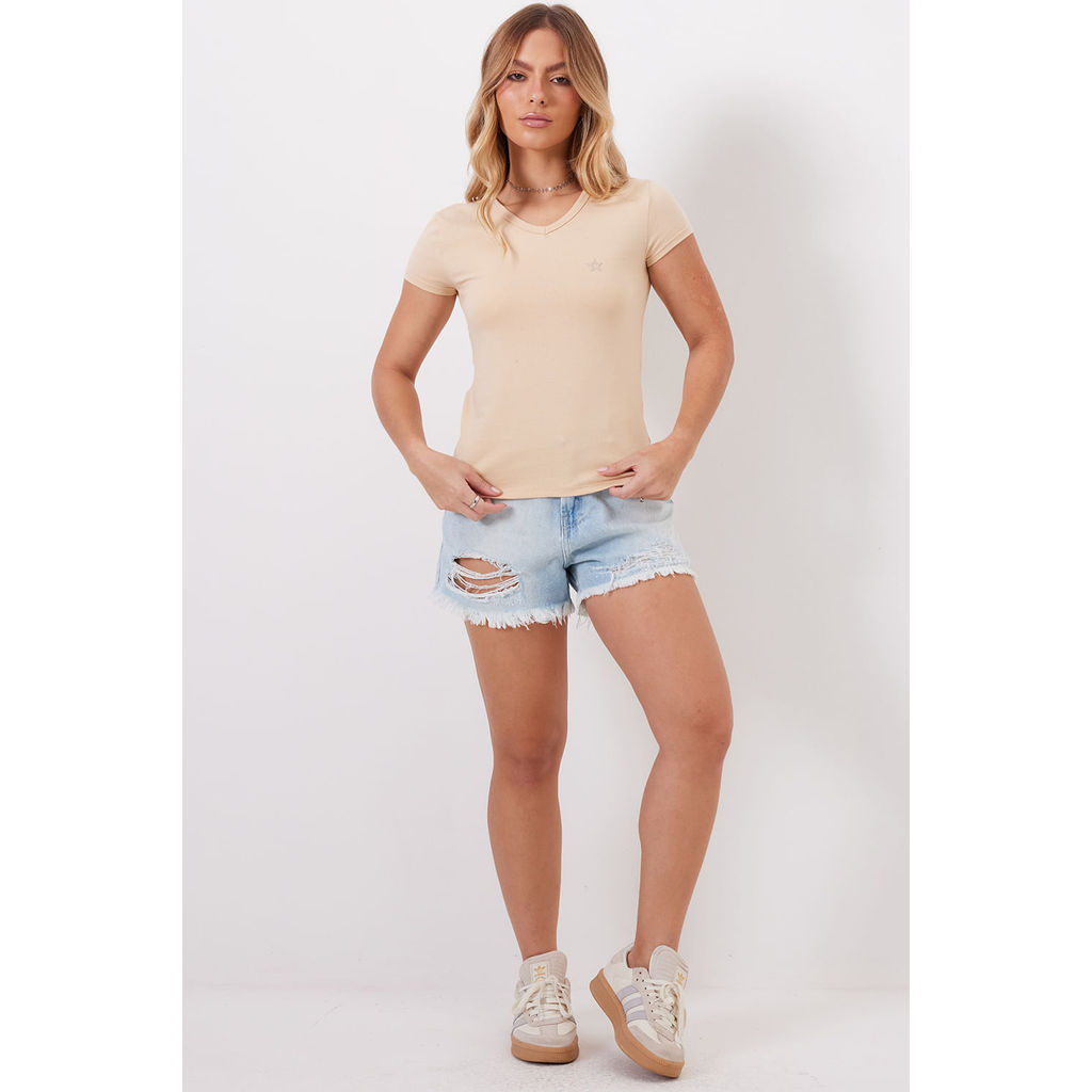 Camiseta Feminina Decote v Planet Girls Bege Médio