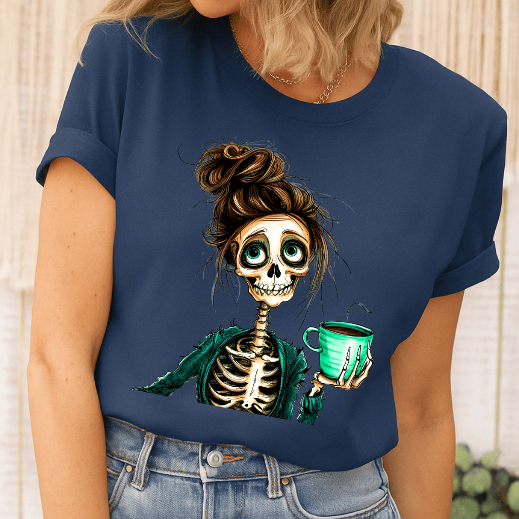 Camiseta Feminina Estampa de Caveira Mulher Verão Halloween Blusa Algodão