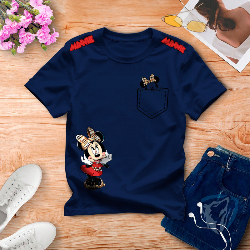 Camiseta Feminina Estampada Com Minnie Personagem Com Detalhes Nas Mangas Super Estilosa