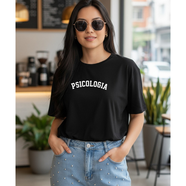 Camiseta Feminina Estampada Psicologia 100% Algodão Blusa Básica