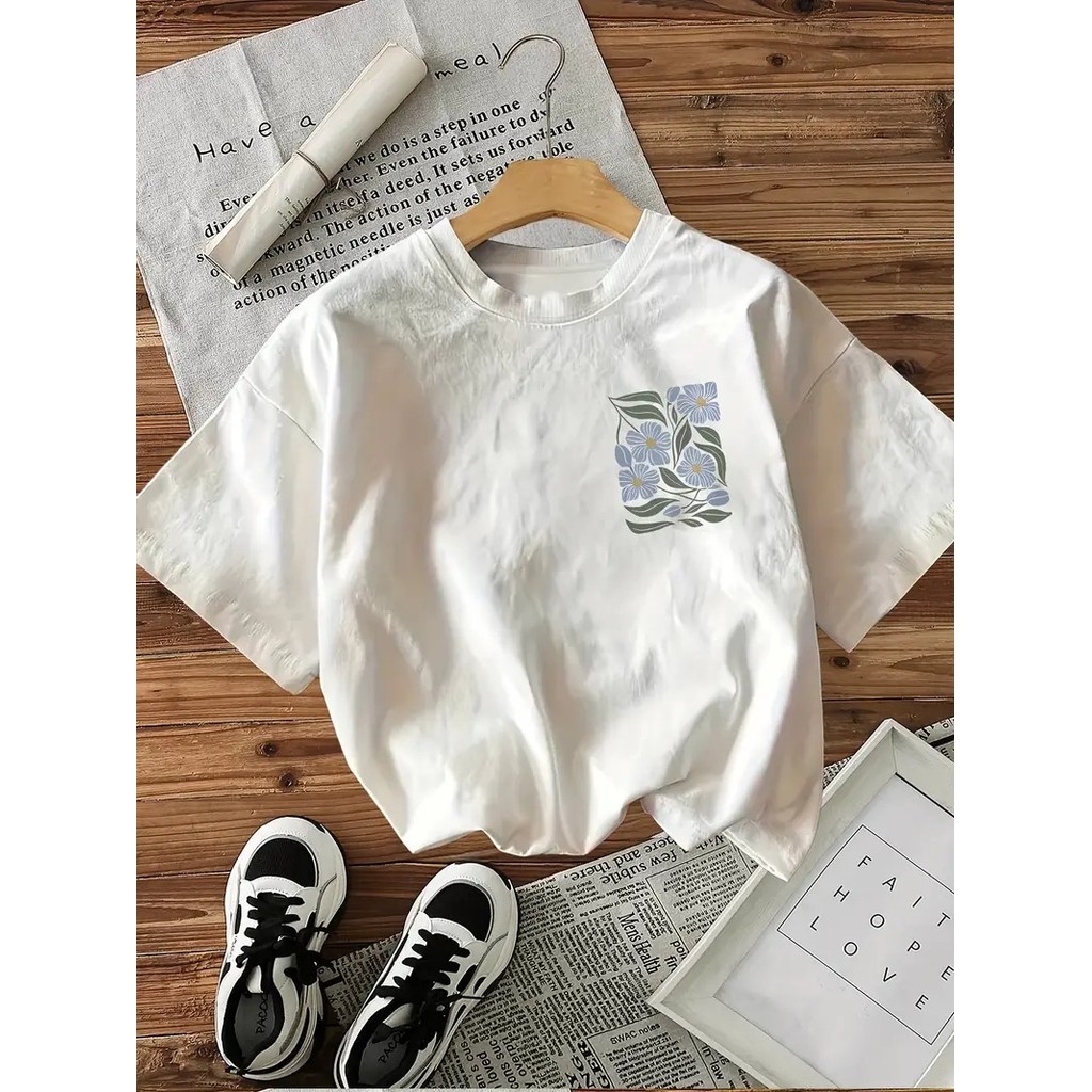 Camiseta Feminina Floral Azul Tropical 100% Algodão Premium 2