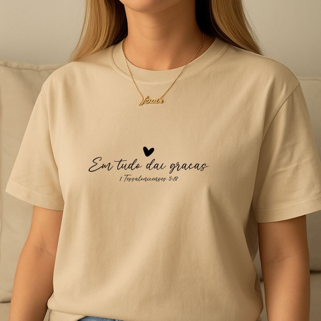 Camiseta Feminina Frase Em Tudo Dei Graças Modelo Casual Lançamento Envio Ja