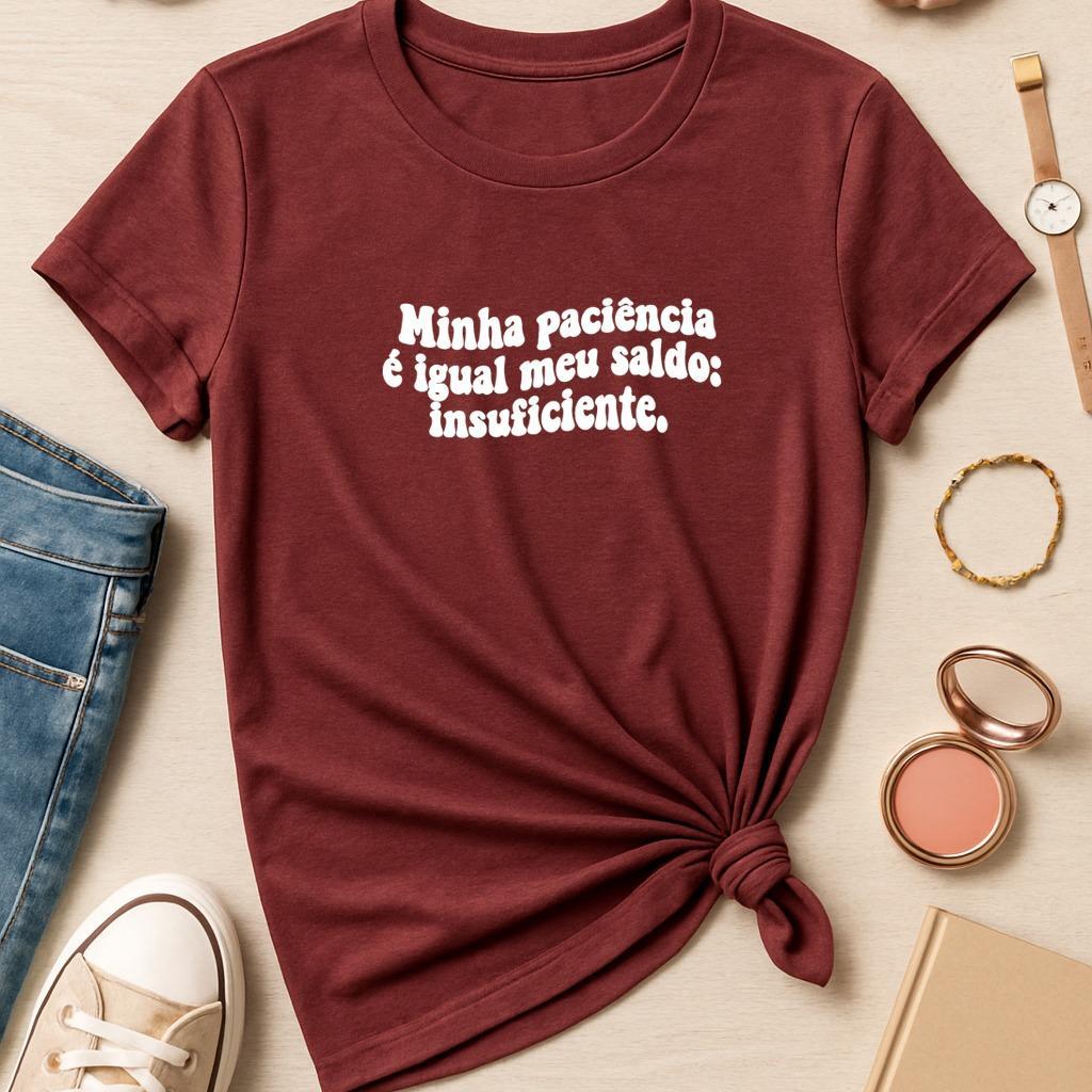 Camiseta Feminina Frase Engraçada Tshirt Sarcastica Manga Curta 100% Algodão Minha Paciencia é Igual Meu Saldo