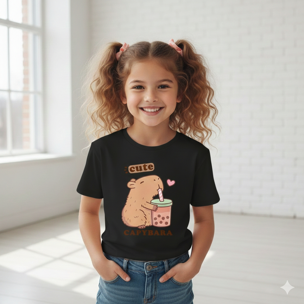 Camiseta Feminina Infantil Capivara Cute Estampada Para Crianças Meninas Camisa Algodão 30.1 Premium