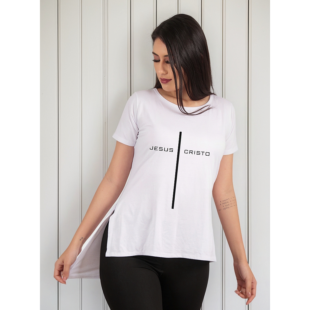 Camiseta Feminina Longline Swag Manga Curta Estampada Gospel Viscolycra EvangélicaTumblr