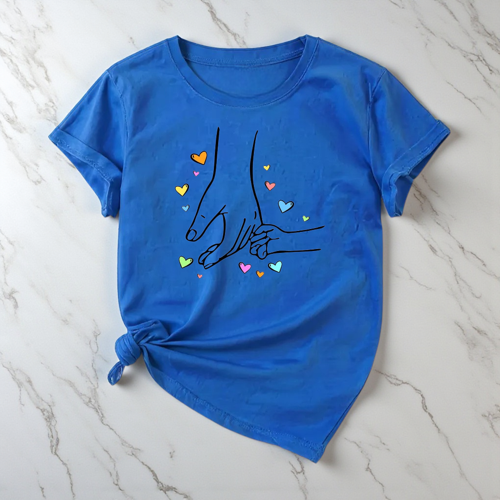 Camiseta Feminina Mãe e Filha Amor Colorida Minimalista Manga Curta Casual 100% Algodão