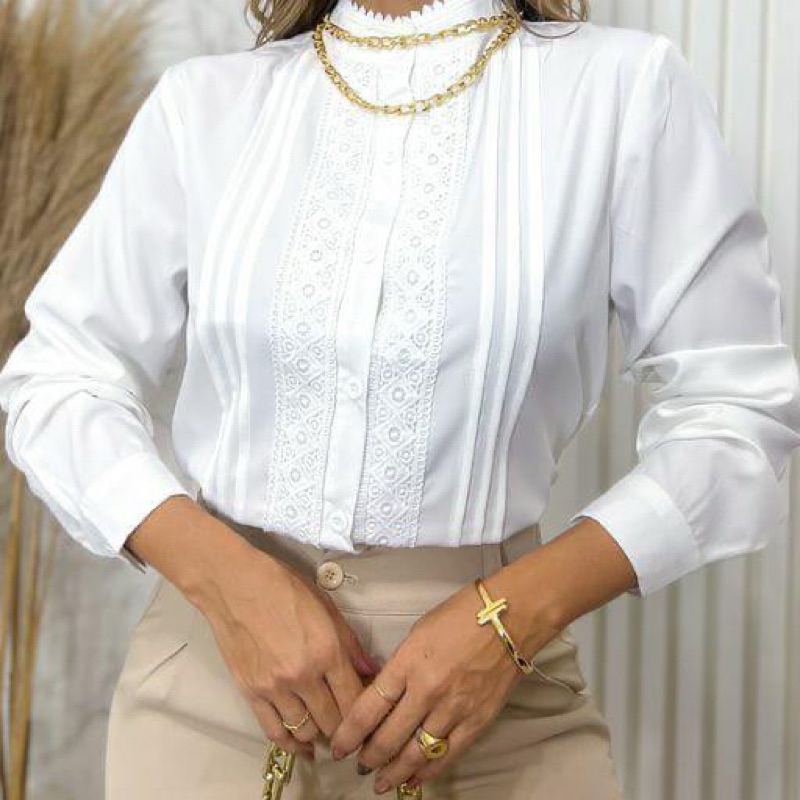 Camiseta feminina manga longa com gola e renda modas F936 aparece na subcategoria Camisas e Blusas (de Roupas Femininas) na Shopee Brasil por R$ 54,90. Avaliado em 4.9/5 pelos compradores e 159 unidades vendidas, este produto se destaca pelo excelente custo-benefício.
