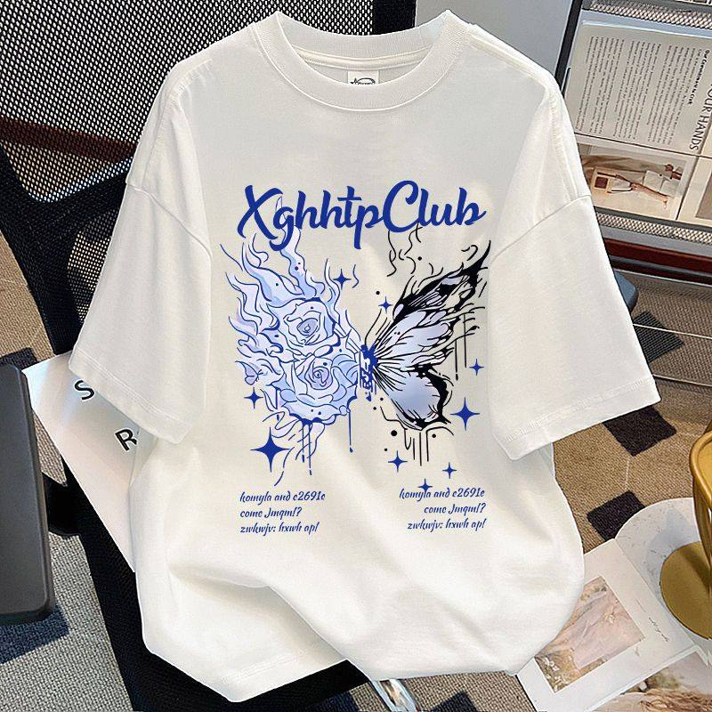 Camiseta Feminina Masculina Butterfly Flames Rosa Vermelho Manga Curta Streetwear T-shirt