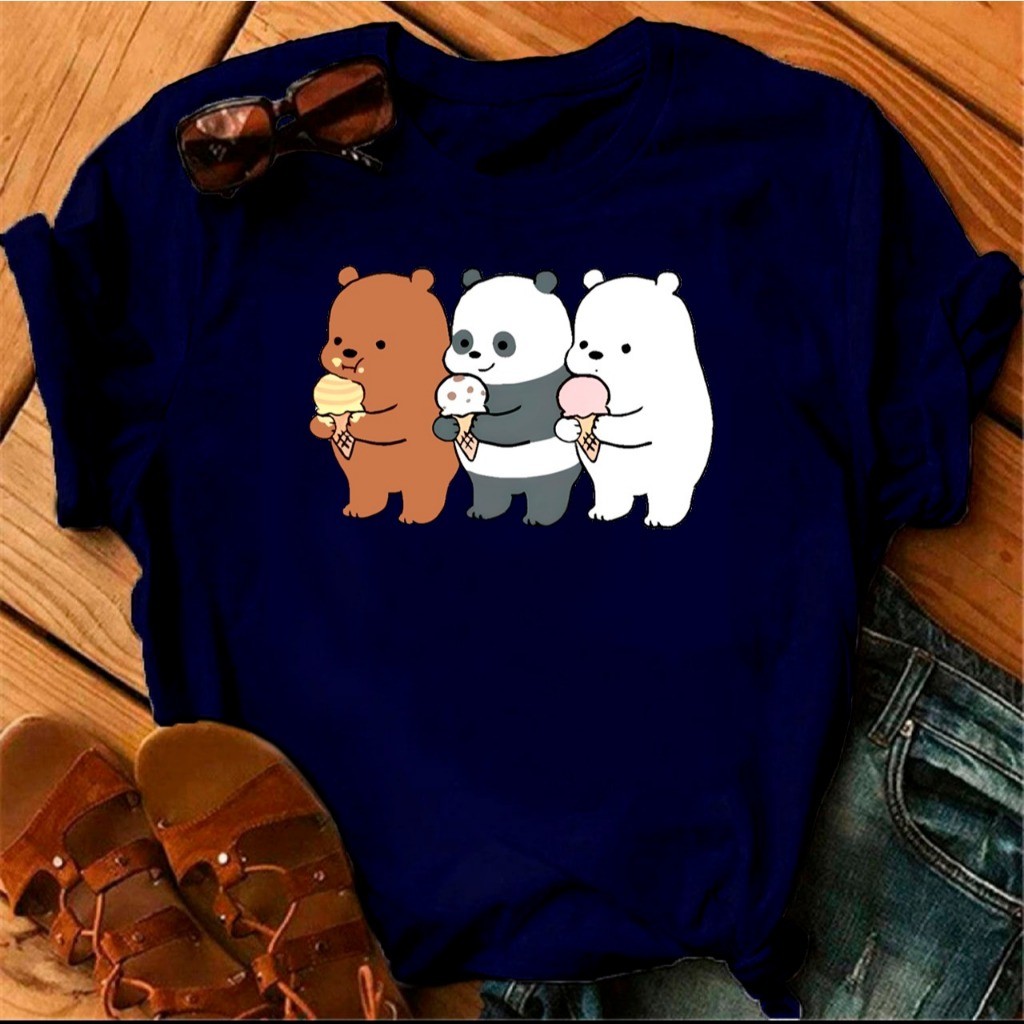 Camiseta Feminina Masculina Ursos Tomando Sorvete (FRENTE) Básica Algodão Camisa Costura Reforçada Unissex