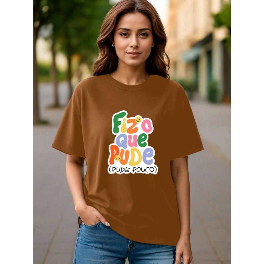 Camiseta feminina oversize estampada Fiz o que pude, pude pouco.