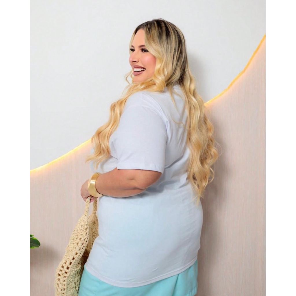 Camiseta Feminina Plus Size Básica 100% Algodão Estampada Premium Tamanho Grande T-Shirt Casual DTF