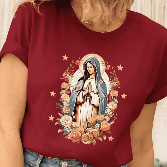 Camiseta Feminina Reforçada Estampada Virgem Maria Confortável Algodão