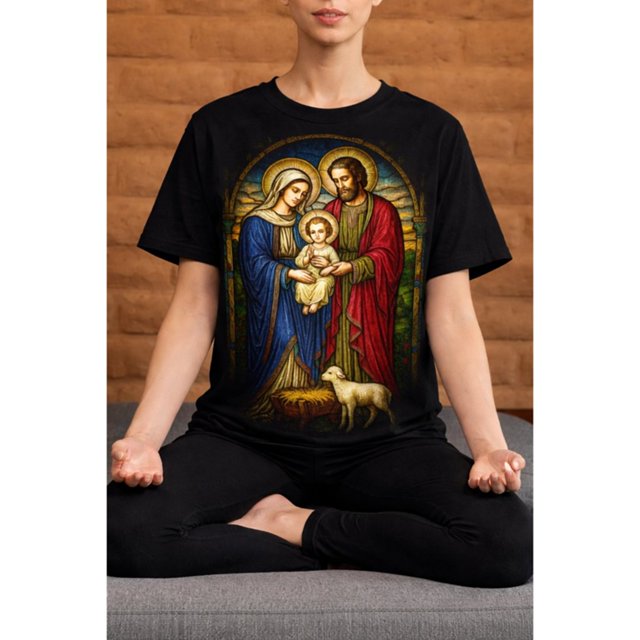 Camiseta Feminina Sagrada Família Jesus Maria José Estampa Católica 100% Algodão Blusinha Femenina