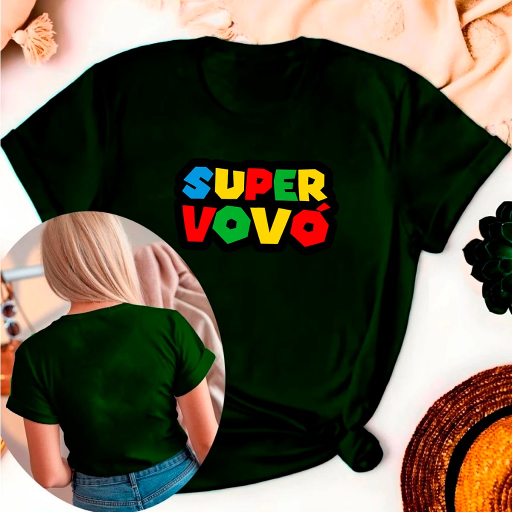 Camiseta Feminina T Shirt Algodão Casual Super Vovó Game Jogo Old Mario Familia