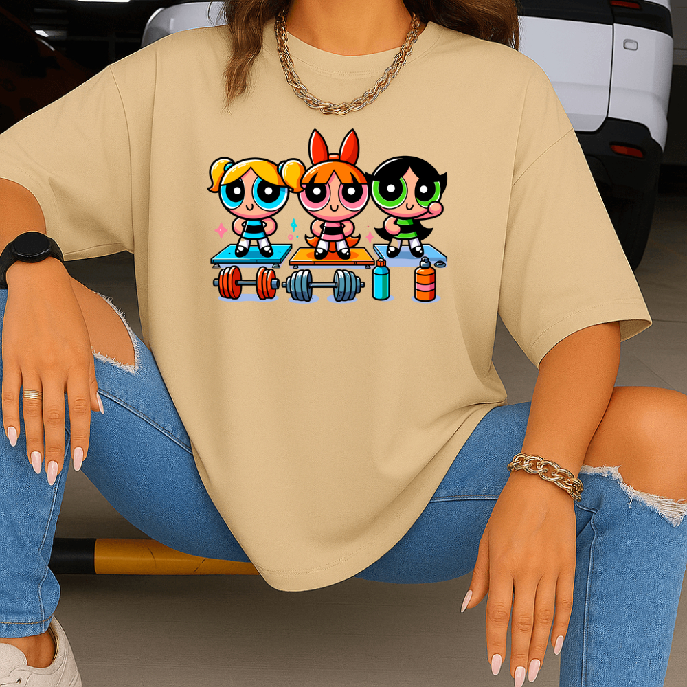 Camiseta Feminina Unissex Estampada Meninas Super Poderosas Treino de Algodão Street Wear