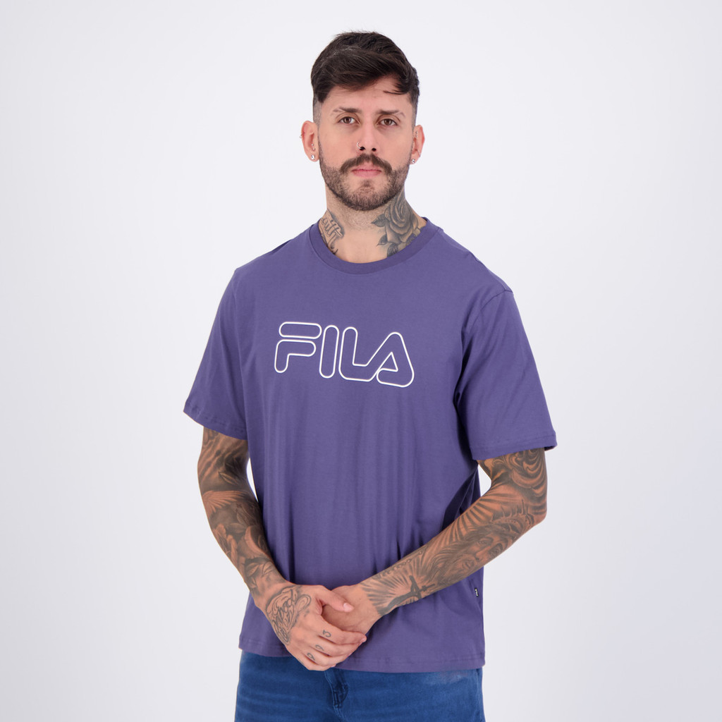Camiseta Fila Regular Letter Outline Azul Marinho