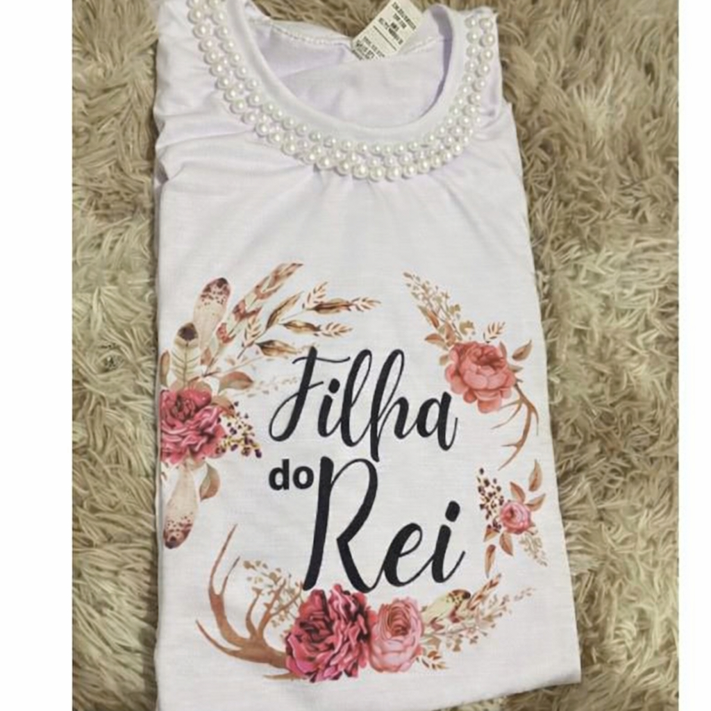Camiseta Filha Do rei com Pérolas na gola