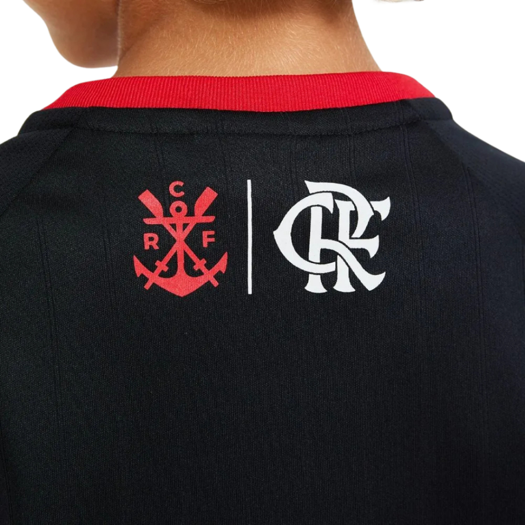 Camiseta raglan confeccionada em Dry Embossed, tecido texturizado com efeito camuflado que absorve e elimina o suor, garantindo melhor transpiração, conforto e visual despojado. Possui mangas contrastantes, estampa do escudo no peito e assinatura do clube nas costas, combinando estilo e identidade rubro-negra. Dimensões aproximadas (A x L): 4 ANOS: 60 x 46 cm 6 ANOS: 62 x 48 cm 8 ANOS: 64 x 50 cm 10 ANOS: 66 x 52 cm 12 ANOS: 68 x 54 cm 14 ANOS: 70 x 56 cm