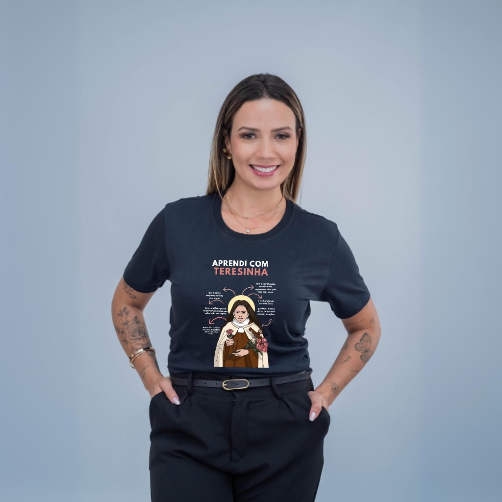 Camiseta Gola Redonda Estamp Aprendi Com Santa Teresinha Lançamento Cristão